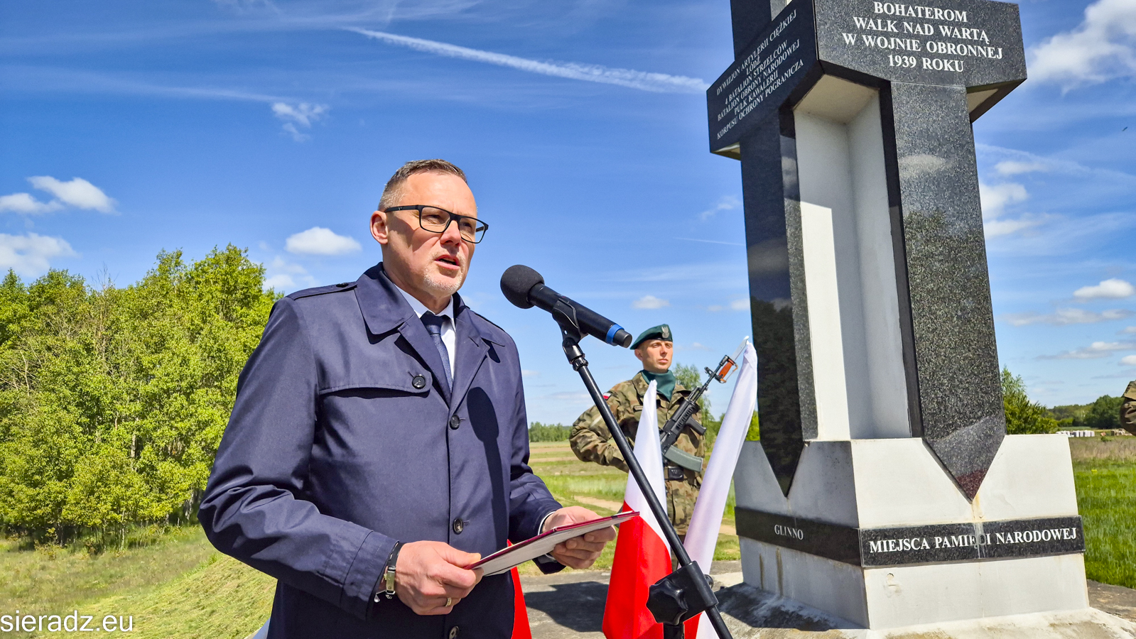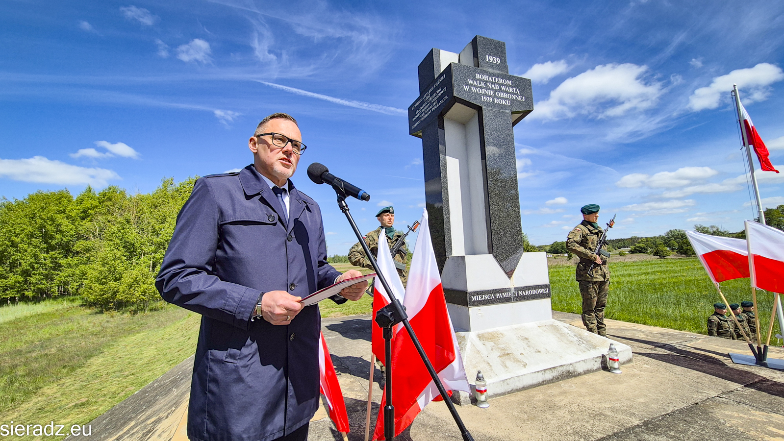 W swoim przemówieniu Prezydent przypomniał, że to właśnie na ziemi sieradzkiej, nad rzeką Wartą, rozegrały się jedne z pierwszych walk kampanii wrześniowej. Szczególnie podkreślił postać strzelca Teofila Jurka, żołnierza 31 Pułku Strzelców Kaniowskich, który poległ w obronie miasta 4 września 1939 roku. – To właśnie tacy ludzie jak on – zwykli, odważni żołnierze – tworzyli fundament naszej niepodległości. Ich czynom zawdzięczamy wolność, którą dziś możemy się cieszyć – powiedział prezydent.