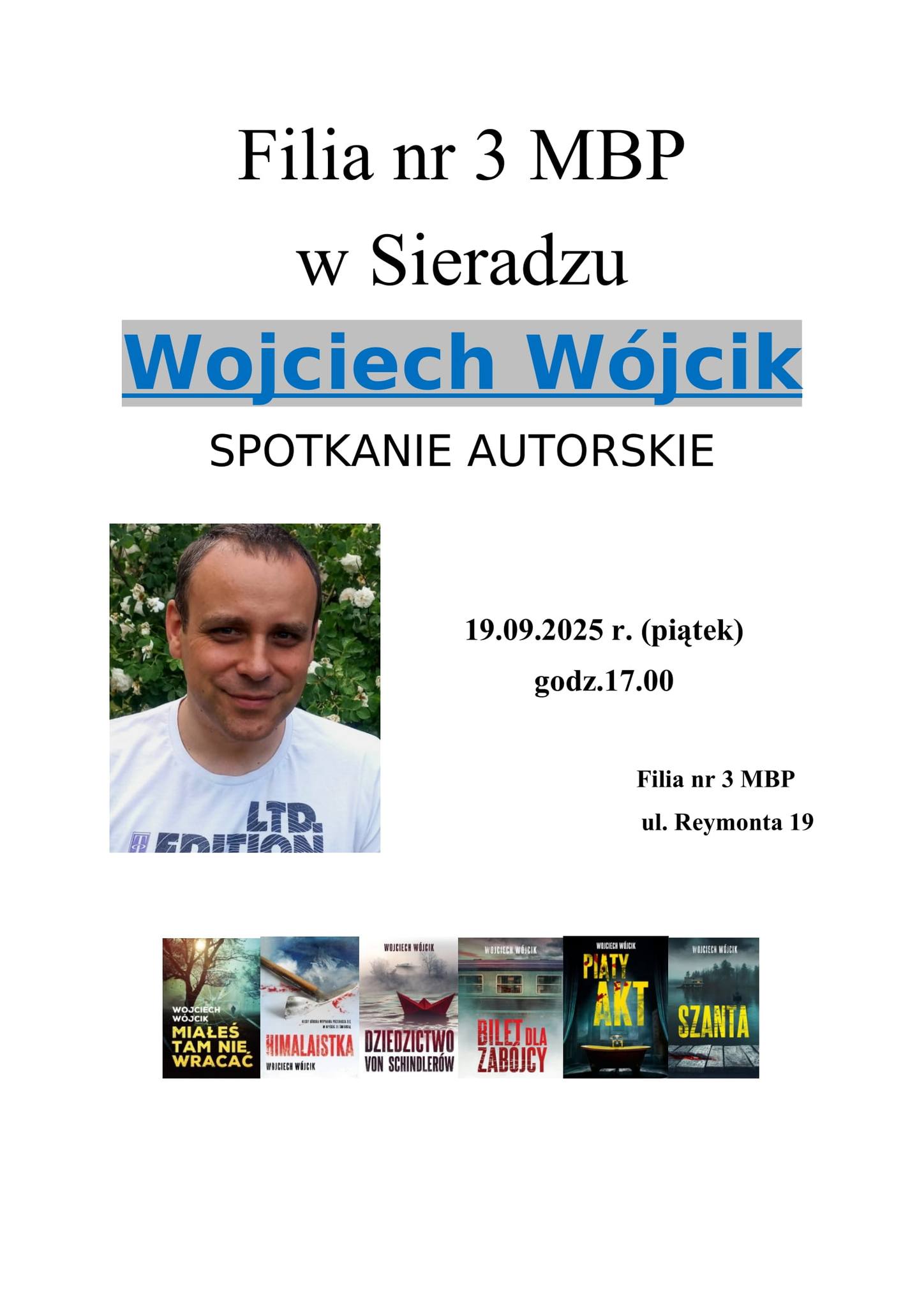 nr 3 MBP w Sieradzu przy ul.Reymonta 19 zaprasza na spotkanie autorskie