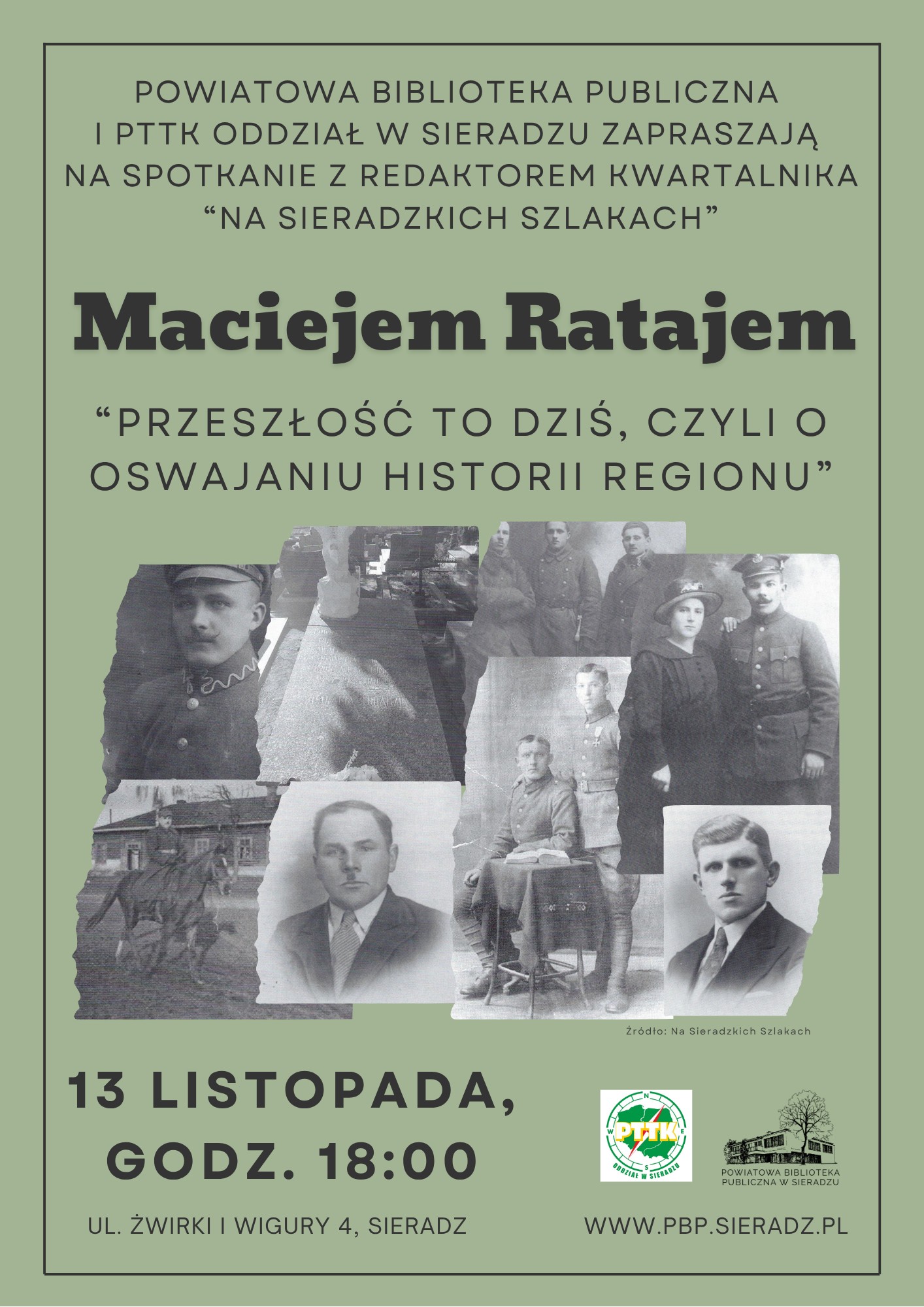 Powiatowa Biblioteka Publiczna w Sieradzu oraz Oddział PTTK w Sieradzu zapraszają na spotkanie z Maciejem Ratajem – redaktorem kwartalnika „Na Sieradzkich Szlakach”.
